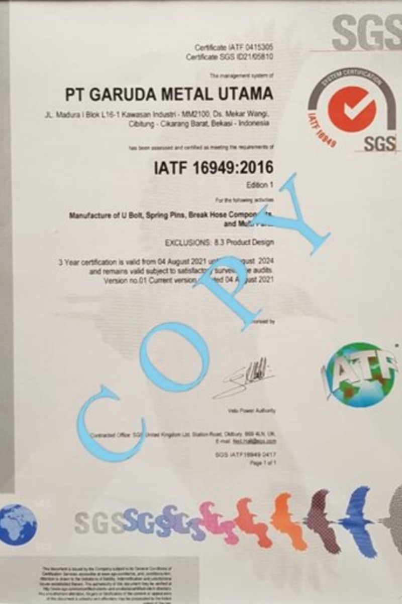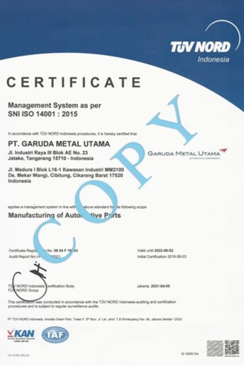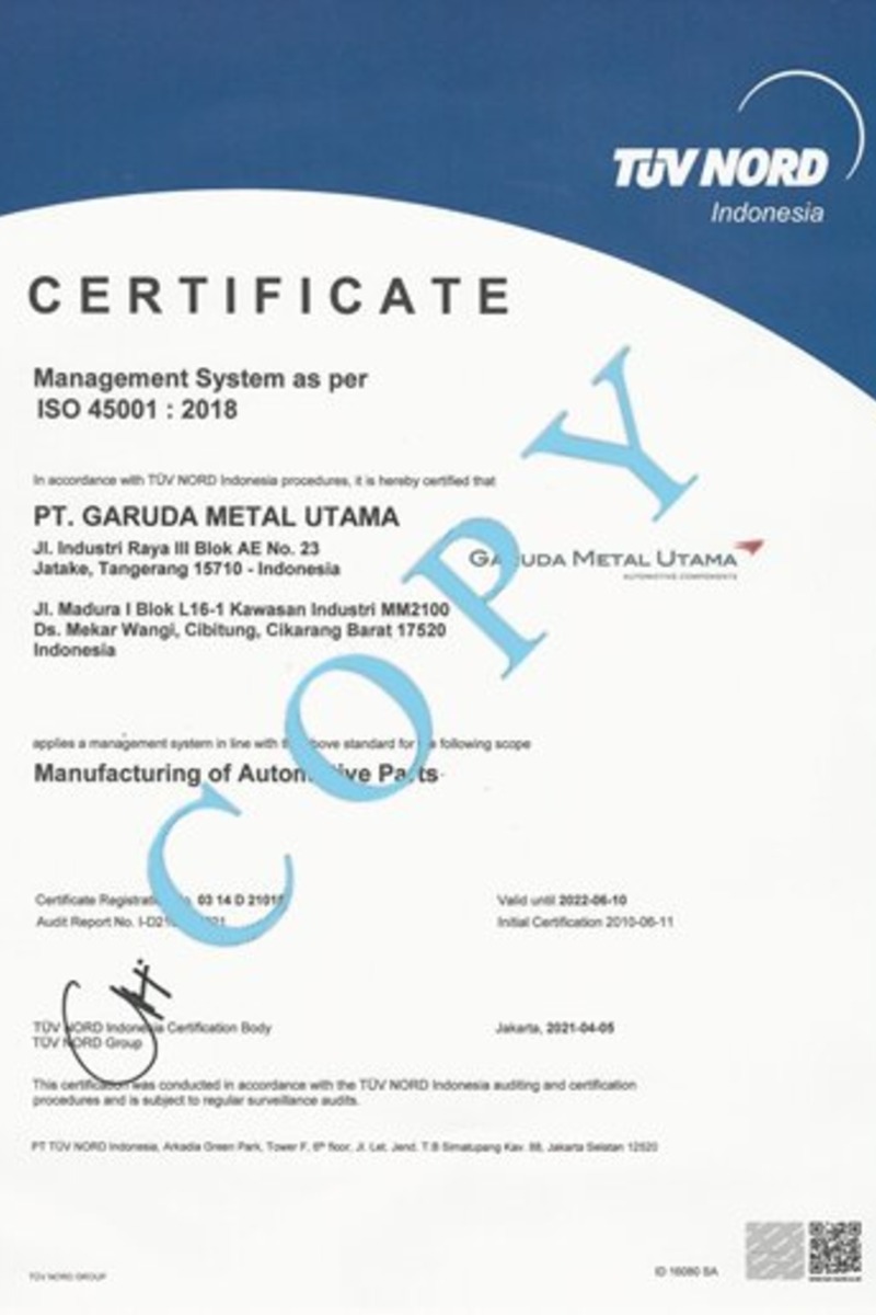 PT. Garuda Metal Utama yang berlokasi di Kawasan Industri MM2100, Cibitung, Bekasi, Jawa Barat. Perusahaan ini didirikan pada bulan Maret 1989, berlokasi di Jatake, Tangerang. Kemudian sejak akhir tahun 2018 kami pindah ke kawasan MM2100 Cibitung karena perluasan bisnis serta lokasi yang strategis dekat dengan pelanggan. Hingga saat ini kami dapat berkembang sampai sekarang berkat dukungan para pelanggan setia kami.